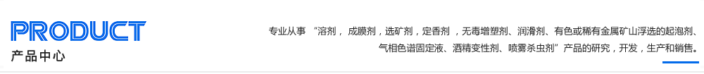 | ? 公司專業(yè)從事 “溶劑, 成膜劑,選礦劑,定香劑 ,無毒增塑劑、潤滑劑、有色或稀有金屬礦山浮選的起泡劑、氣相色譜固定液、酒精變性劑、噴霧殺蟲劑”產(chǎn)品的研究,開發(fā),生產(chǎn)和銷售。 |